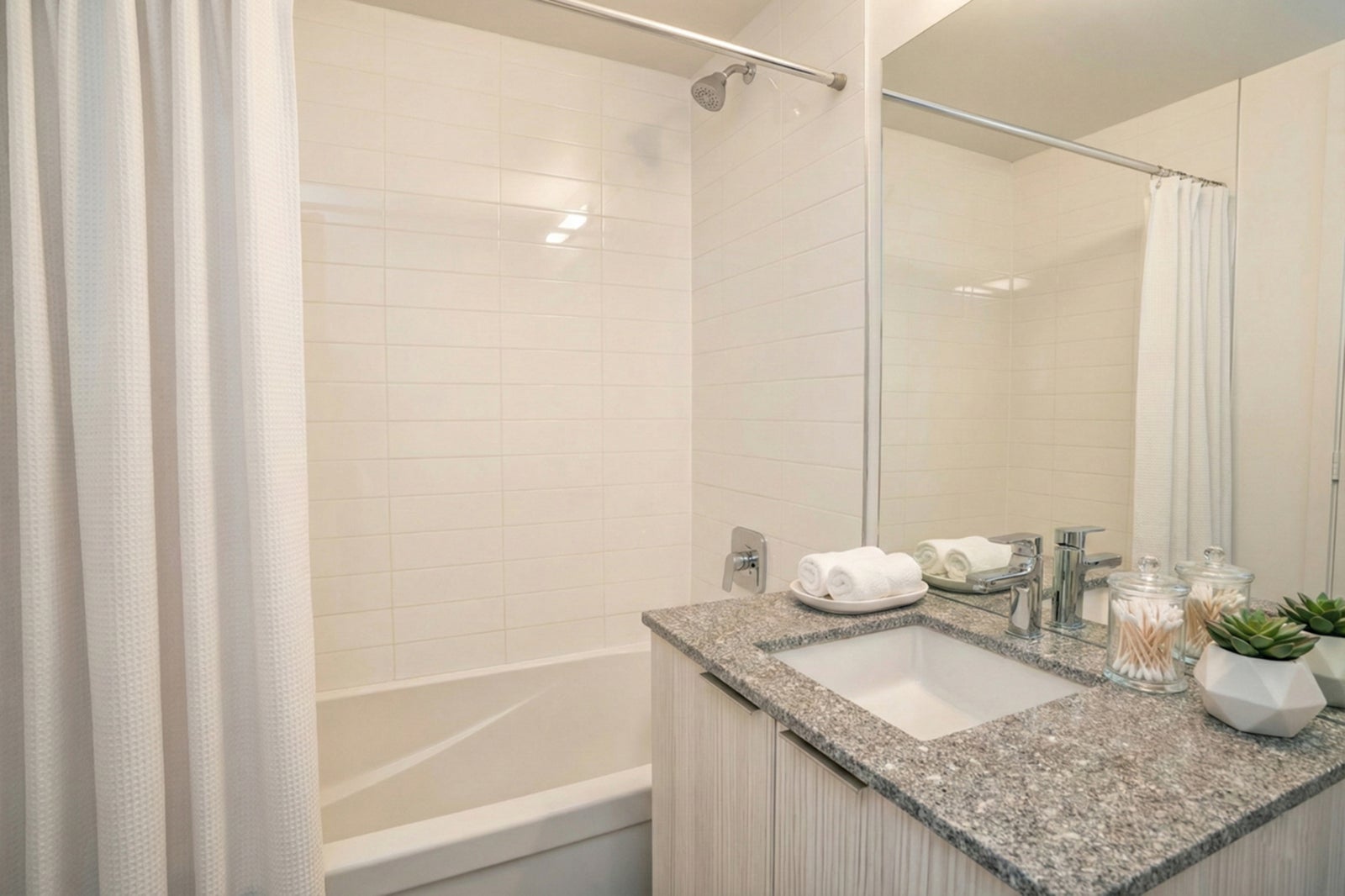 while low-maintenance laminate wood floors flow throughout. Updated lighting and quality roller shades